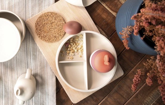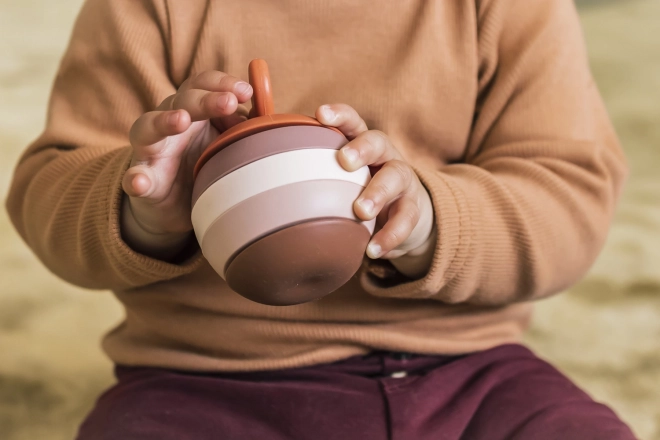 Jucăria este fabricată din silicon alimentar sigur, netoxic și rezistent la spargere. Pentru copiii mici, siliconul este mai natural decât plasticul sau metalul. Foarte plăcut pentru mușcare și pentru stimularea gingiilor sensibile și solicitate în timpul creșterii dinților.