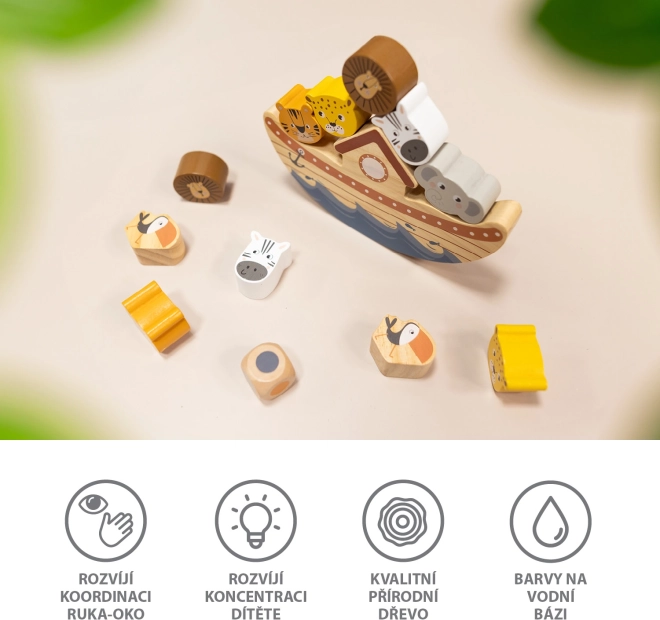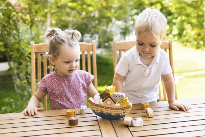 Lasă-i pe copii să descopere cum funcționează gravitația și să învețe percepția spațială. Într-un mod distractiv, vor învăța cum să așeze obiectele astfel încât să mențină echilibrul. Jocul este potrivit și pentru un singur jucător. În cazul în care joacă mai mulți jucători, pierde cel căruia îi cad animăluțele din arcă primul.