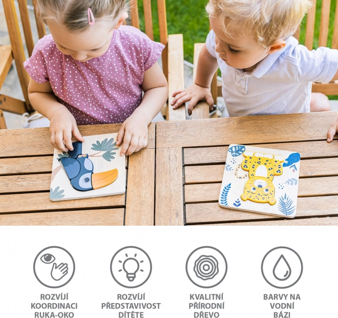 Datorită pieselor rezistente din lemn, aceste puzzle-uri sunt concepute pentru a rezista la ore nesfârșite de distracție, iar folosirea vopselelor netoxice le face pe deplin sigure pentru copii. Puzzle-urile ajută, de asemenea, la dezvoltarea motricității fine și a coordonării mână-ochi, totul printr-un joc distractiv și educativ.