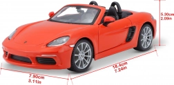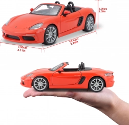 Completează-ți colecția cu modelul grozav Porsche 718 Boxster de la Bburago, în culoare portocaliu intens.