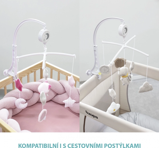Caruselul este conceput pentru pătuțuri standard, iar montajul său este foarte simplu. Mecanismul muzical cu arc funcționează fără baterii. Jucăriile fine din pluș, din material de calitate, sigur, foarte plăcut la atingere, pot fi ușor detașate de pe carusel și pot deveni și mici prieteni de alint.