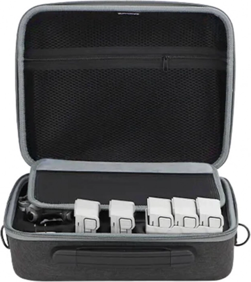 Compartimentele din spumă reliefată fixează ferm drona, telecomanda, încărcătorul și până la 5 baterii. Fiecare element are locul său și este protejat împotriva mișcării și a impacturilor.