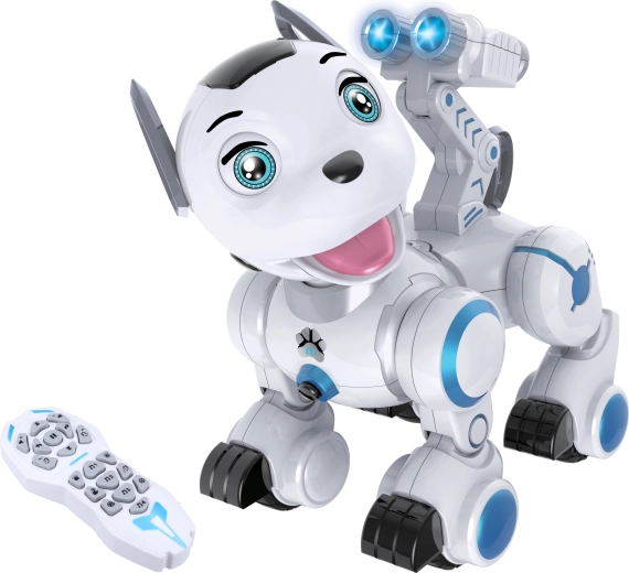 Drăgălașul câine robot telecomandat este un partener grozav pentru copiii de la 3 ani. Poate merge înainte și înapoi, vira, întoarce capul, latră și scâncește și încântă cu efecte luminoase și sonore. Datorită dansului și reacțiilor amuzante, cucerește rapid inimile mici și mari, se încarcă convenabil prin USB și este gata să vă păzească teritoriul cot la cot.