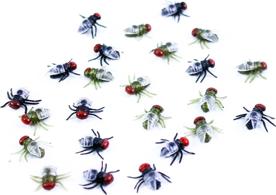 - Conținut pachet: aproximativ 24 de muște din cauciuc