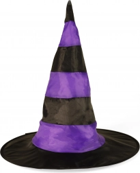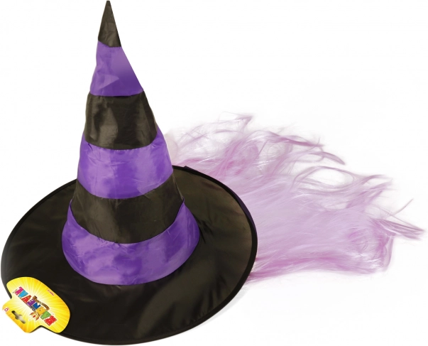 Pălăria se remarcă datorită aspectului său iconic de vrăjitoare, care include margine largă și model cu dungi.