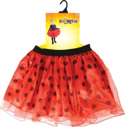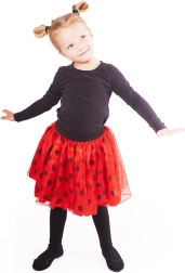 Transformați-o pe fetița voastră într-o buburuză voioasă dintr-o singură mișcare. Fusta multistrat, pufoasă, din tulle fin este confortabilă, își păstrează frumos forma și, datorită taliei elastice, se îmbracă ușor. Culoarea roșie cu buline negre cucerește din prima clipă și dă farmec oricărei costumații.