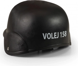 - pistol mitralieră, vestă de protecție cu inscripții în cehă, grenadă, walkie-talkie, ceas, insignă, ochelari, cască