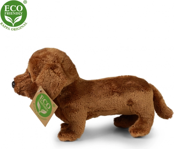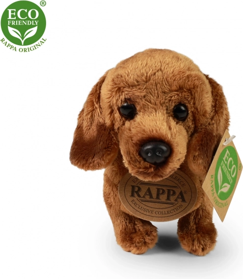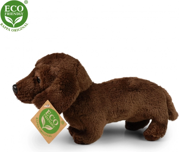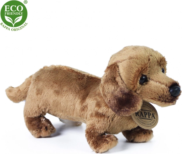 Drăgălașul teckel de pluș cu înălțimea de 19 cm va încânta micii și marii iubitori de câini. Jucăria este fabricată din pluș de calitate, catifelat, și face parte din colecția exclusivă RAPPA. Umplutura din sticle PET reciclate este ECO‑FRIENDLY, sigură și plăcută, foarte moale la atingere. Potrivită pentru copii de la 3 ani.