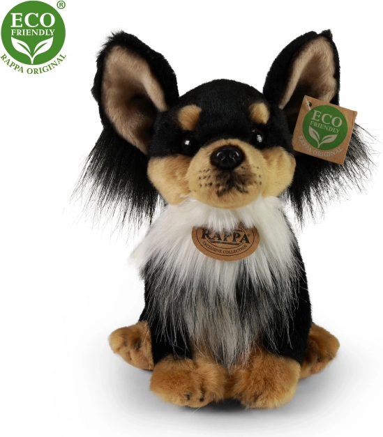 Drăgălașul câine chihuahua de pluș va bucura orice copil și iubitor de animale. Este confecționat din pluș de înaltă calitate, are un aspect realist și, datorită umpluturii ECO‑FRIENDLY din sticle PET reciclate, este prietenos cu natura. Ideal ca cadou sau companion de somn.