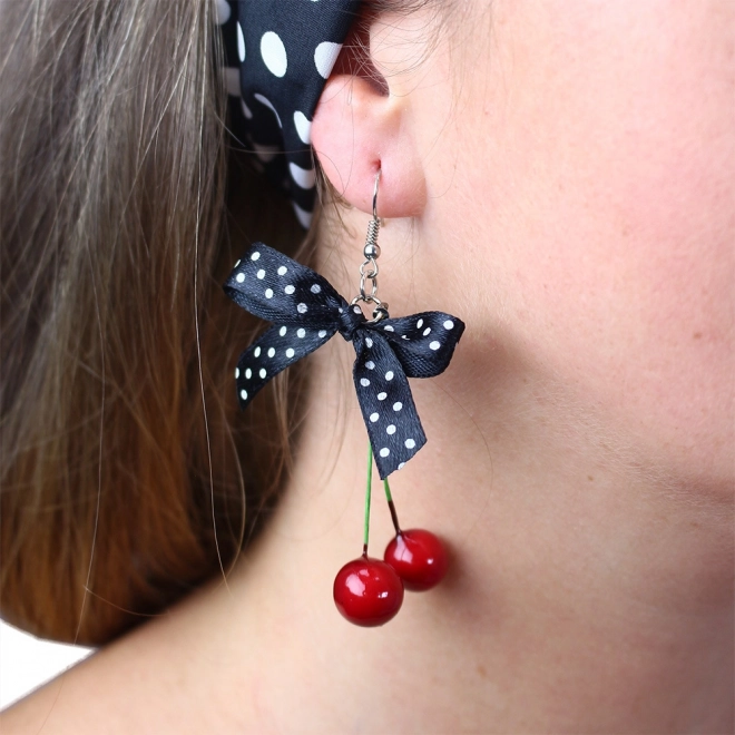 Cercei cu cireșe și fundă cu buline