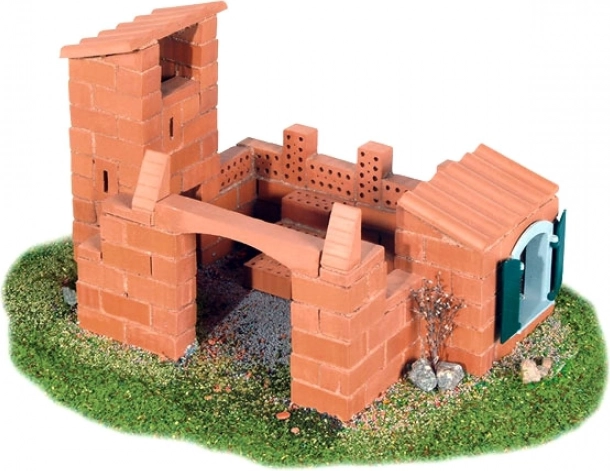 Setul este fabricat din cărămizi reale unite cu mortar de porumb.