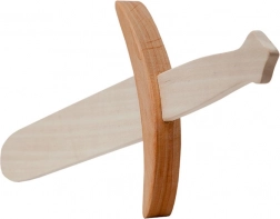 Cuțit din lemn elegant cu o finisare naturală și gardă ușor mai întunecată, invitând la jocuri aventuroase.