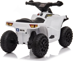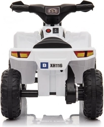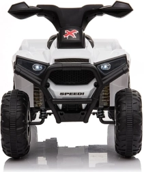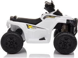 Acest ATV electric pentru copii, cu un design modern, impresionează prin aspect și execuție practică. Roțile late, cu profil pronunțat, ajută la menținerea stabilității pe diverse suprafețe, iar ghidonul ușor de prins susține dezvoltarea motricității fine și grosiere.