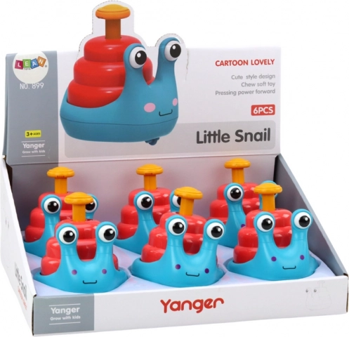 Melcul care se deplasează pe roți este o jucărie neobișnuită, care încântă prin acțiunea sa interactivă. După apăsarea pistonului, melcul se mișcă vioi pe suprafață, oferind multă distracție și încurajând copilul la activitate.
