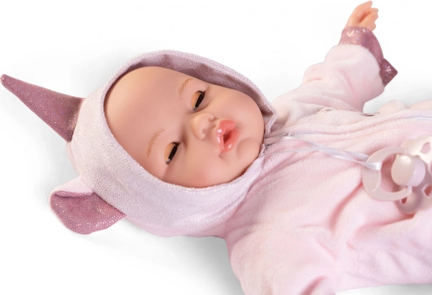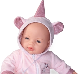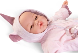 Păpușa scoate sunete autentice ale unui copil care plânge și spune „mama”, „tata”, când îi scoți suzeta.