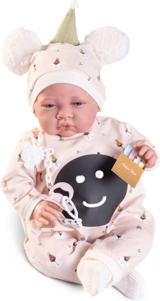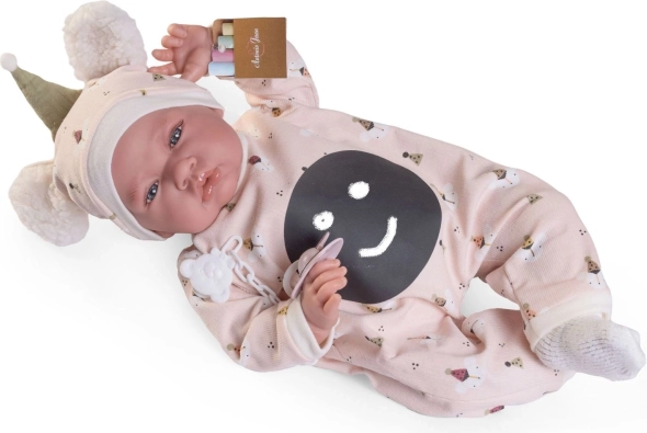 Păpușă spaniolă realizată manual de marca Antonio Juan aduce detalii facial adevărate și membre articulate, care permit diverse poziții, inclusiv șederea independentă. Corpul moale din material textil asigură o îmbrățișare plăcută și confort la joacă.
