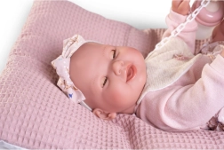 Descoperiți farmecul păpușilor spaniole realizate manual, care oferă detalii true-to-life, inclusiv falduri adorabile și alte detalii de bebeluș. Păpușa este fabricată din vinil moale, fiind foarte plăcută la atingere. Fiecare păpușă este îmbrăcată în bumbac organic, ecologică și fără tratamente chimice, confirmând angajamentul mărcii Antonio Juan pentru sustenabilitatea mediului.