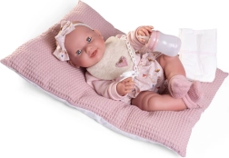 Pachetul include un biberon reîncărcabil cu apă și două scutece de unică folosință. Întregul set este ambalat cu grijă într-o cutie de cadou, fiind cadoul perfect pentru orice ocazie. Păpușa măsoară 42 cm și este ideală pentru copiii de peste 3 ani, promovând jocul creativ și îngrijirea.