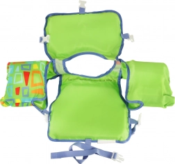 Umplutura cu spumă a vestei asigură o flotabilitate excelentă, în timp ce mânecile atașate acoperite cu material moale mențin copilul fără probleme la suprafață. Cataramele reglabile asigură o ajustare perfectă pe corpul copilului, oferind confort în timpul jocului. Vesta se remarcă printr-un design strălucitor, verde și un model atractiv, astfel copilul este vizibil chiar și de la distanță.