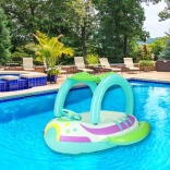 Pontonul gonflabil BESTWAY, cu design jucăuș „cosmic”, transformă fiecare baie într-o aventură. Copertina oferă protecție eficientă împotriva soarelui, iar fundul moale cu scăunel aduce confort maxim la joacă și relaxare. Volanul stimulează imaginația și dezvoltă motricitatea.