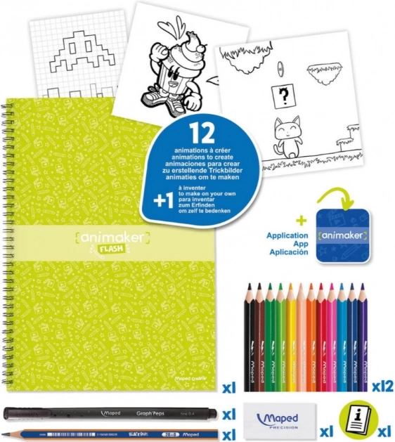 Maped Creativ oferă setul Animaker Flash, care permite realizarea a 12 mini-filme de animație după un șablon propus sau după propriul concept nelimitat.