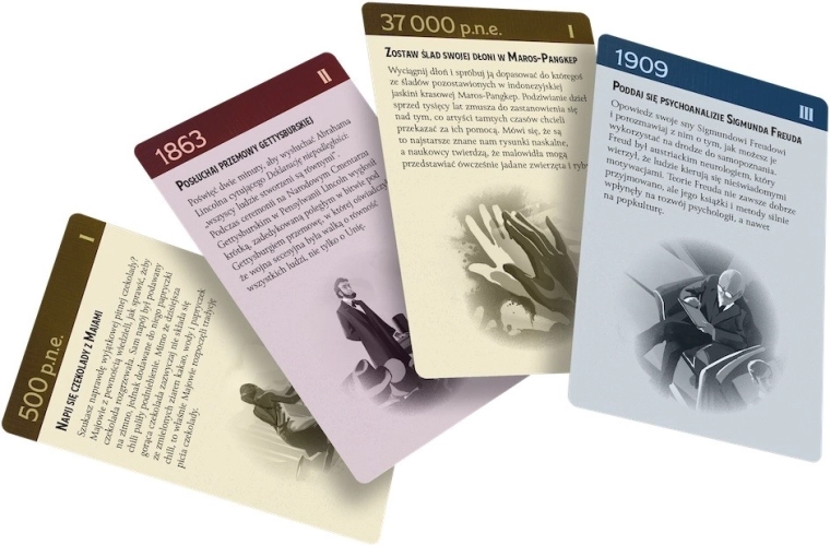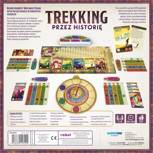 Trekking prin istorie este un joc strategic pentru întreaga familie, care îi poartă pe participanți într-o călătorie unică prin cele mai importante evenimente ale istoriei. În timpul jocului vom alege cărți speciale ale istoriei și vom încerca să respectăm ordinea corectă pentru a obține cât mai multe puncte. Datorită aranjamentului variabil al elementelor și tabelelor individuale de obiective, jocul rămâne foarte captivant chiar și după mai multe partide, în timp ce ilustrațiile atmosferice și descrierile evenimentelor istorice conferă jocului un caracter educativ.