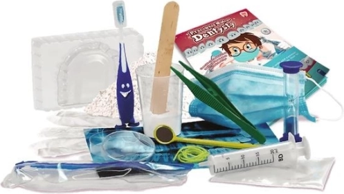 Setul Micul dentist îmbină distracția cu educația. Copiii vor cunoaște instrumentele medicului stomatolog, vor afla câți dinți are un copil și un adult și își vor însuși obiceiuri corecte de îngrijire a dinților. Datorită clepsidrei vor învăța ușor cât timp trebuie periați corect dinții, iar cu oglinda stomatologică își vor explora zâmbetul.