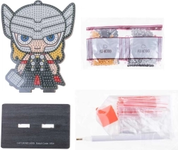 Găsești tot ce ai nevoie în pachet: stilou de aplicare, ceară, tavă, set de pietricele colorate, bază pentru figurină și suport. Figurina finală este excelentă ca decorațiune pentru birou sau raft, cadou pentru fanii Avengers sau ca prim pas în lumea diamond painting-ului.