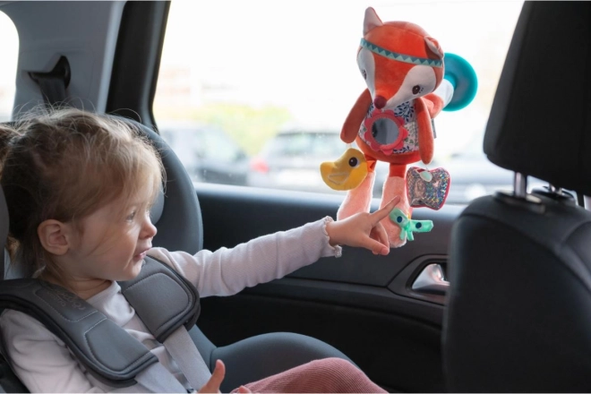 Călătoriile vor fi mai distractive cu jucăria de pluș vulpe Alice de la Lilliputiens, care datorită ventuzei se prinde ușor de fereastră. Această jucărie oferă o serie de activități interactive pentru cei mai mici, care dezvoltă abilitățile motorii fine și percepția senzorială.