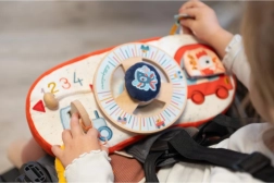 Panoul textil cu volan Lilliputiens este jucăria ideală pentru copiii mici care doresc aventură. Cu ajutorul său, copiii se pot transforma în mici șoferi, sub supravegherea găinuței Paulette, văcuței Rosalie și oiței Yvona. Volanul este conceput pentru o experiență sigură de utilizare: