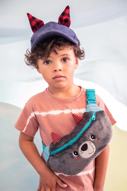 Borsetă trendy pentru copii cu motivul Lupului Ludvik concepută pentru copii de la 2 ani. Include o curea de umăr reglabilă și închidere sigură cu fermoar pentru păstrarea în siguranță a comorilor copiilor.