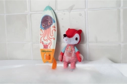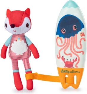 Drăgălașa vulpe Alice iubește valurile! De îndată ce sare în apă, pe neoprenul ei și pe placa de surf apar desene magice. O jucărie de baie amuzantă pentru cei mici, care susține descoperirea senzorială și transformă fiecare baie într-o aventură plină de bucurie. Întreținere ușoară și execuție sigură de la Lilliputiens.