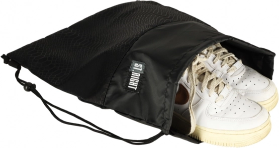 Sacul ușor și rezistent pentru pantofi ST. RIGHT este o alegere excelentă pentru elevi, sportivi și pentru oricine caută o soluție simplă și fiabilă pentru transportul încălțămintei și al echipamentului sportiv. Designul minimalist în negru este completat de un logo discret și un model texturat, cu un aspect modern și universal.