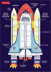 Pe partea din spate a imaginii este o descriere schematică a navetei spațiale, care oferă copiilor o valoare educațională suplimentară.
