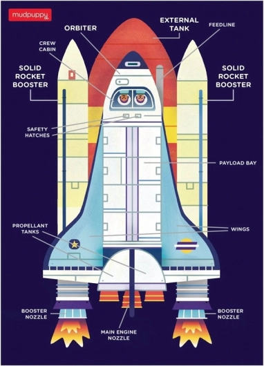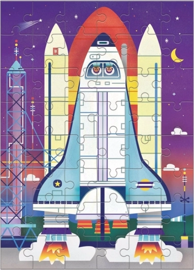 Puzzle mini navetă spațială de la Mudpuppy este o creație ideală pentru copiii creativi și curioși. Datorită schemei realiste a navetei spațiale pe partea din spate, copiii nu doar că se distrează, ci și învață din ce este compusă naveta spațială. Puzzle-ul este fabricat în proporție de 90% din hârtie reciclată, cutia conține 70% hârtie reciclată iar culorile sunt netoxice și pe bază de soia, asigurând siguranța și eco-friendly. Acest produs îndeplinește standardele de siguranță CPSIA, ASTM și CE.