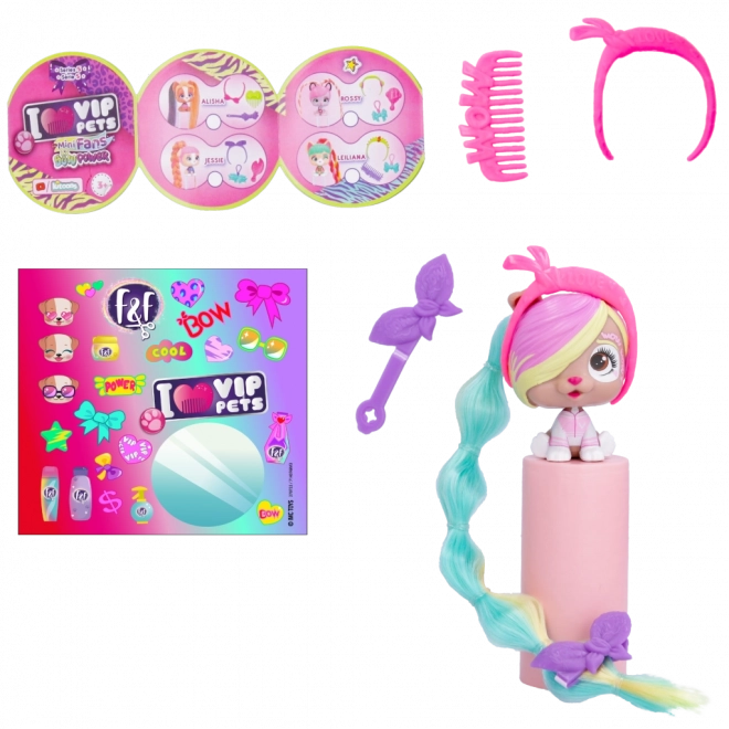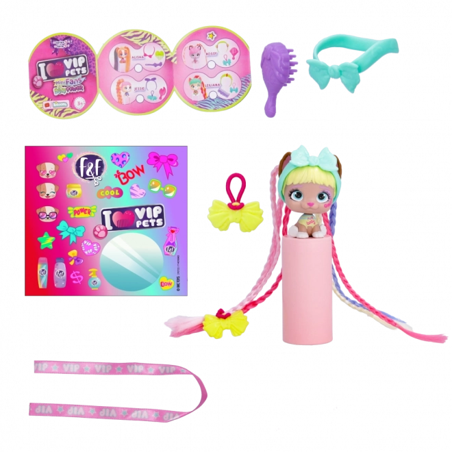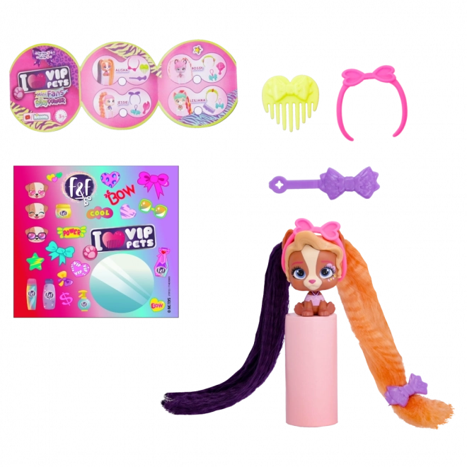 VIP Pets Mini Fans Bow Power este o colecție care aduce 8 cățeluși mini diferiți, fiecare cu accesorii pentru păr absolut unice. Acești cățeluși adorabili urmează cea mai nouă tendință Bow Power. În interiorul pachetului vei găsi: