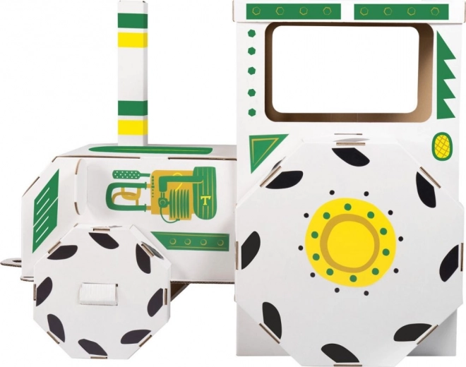 Acest tractor din carton pentru copii susține imaginația, jocul în grup și dezvoltarea motricității fine. Construcția ușoară, dar robustă, din carton, este sigură pentru utilizarea în interior și pregătită pentru o asamblare rapidă. Suprafața neutră, albă, cu detalii verzi‑galbene are un aspect jucăuș și se potrivește ușor în orice cameră de copii.