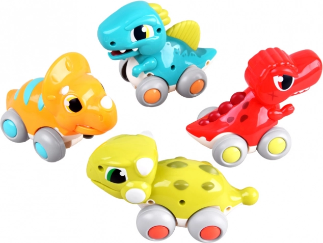 Împinge și pornește! Dinozaurul se pune în mișcare datorită mecanismului cu fricțiune – ideal pentru jocul intuitiv al copiilor de la 18 luni.