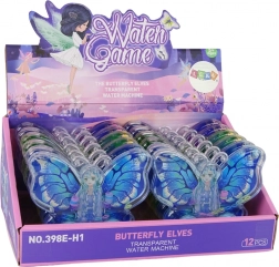 Jucăria de apă are forma unui fluture, cu grafică colorată în trei variante de culori.