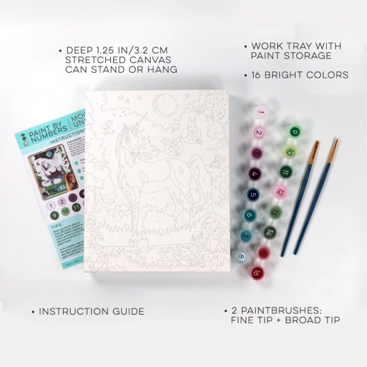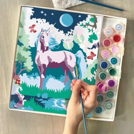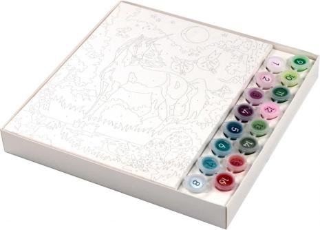 Descoperă relaxarea și creativitatea cu setul pictură după numere – unicorn. Ideal atât pentru începători, cât și pentru avansați: tot ce trebuie este să aplici culoarea corectă pe câmpurile numerotate și vei crea cu ușurință propriul tablou cu un motiv magic de unicorn.