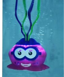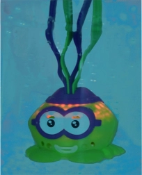 Crabul distractiv atrage atenția copiilor în apă cu culorile sale vibrante.