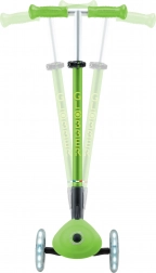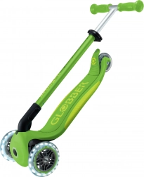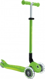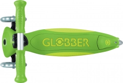 Trotineta GLOBBER Primo Foldable Plus Lights se remarcă prin combinația de stabilitate, siguranță și distracție. Cele două roți frontale mari de 120 mm cu LED-uri alimentate de dinam atrag atenția din prima și îmbunătățesc vizibilitatea. Platforma joasă și lată cu suprafață antiderapantă susține o poziție sigură și un control confortabil pentru începători.