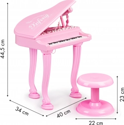 Bucurați-vă de distracție de neuitat cu acest pian roz care va aduce o atmosferă muzicală în casa dumneavoastră. Pianul este proiectat pentru a le permite copiilor să compună propriile melodii și oferă un aspect realist al unui instrument adevărat. Setul include un scăunel care asigură confortul la utilizare pentru micuțul dumneavoastră artist.