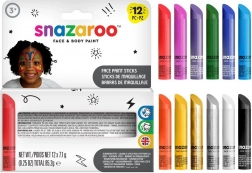 Setul de culori pentru față și corp SNAZAROO sub formă de stick aduce machiaj rapid și comod, fără murdărie. Datorită vârfului teşit aveți control deplin asupra trăsăturilor și puteți crea atât linii subțiri, cât și suprafețe mai pline de culoare. Grozav pentru petreceri pentru copii, carnavaluri, cosplay și susținerea echipelor sportive.