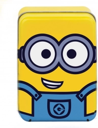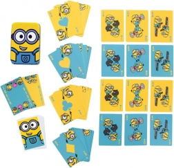 Cărți de joc Minioni cu o cutie metalică decorativă sunt un cadou minunat pentru orice fan. Ideal pentru diverse jocuri de cărți precum quartet, rummy sau poker.