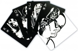 Cărți de joc stilate cu tematica STAR WARS într-o cutie metalică decorativă, care vor încânta orice fan și jucător. Conțin 54 de cărți, inclusiv 2 jokere, și sunt ideale pentru poker, blackjack, rummy, quartet, Popa Prostu’ și solitar. Grozave pentru acasă și în călătorii, recomandate de la 6 ani.