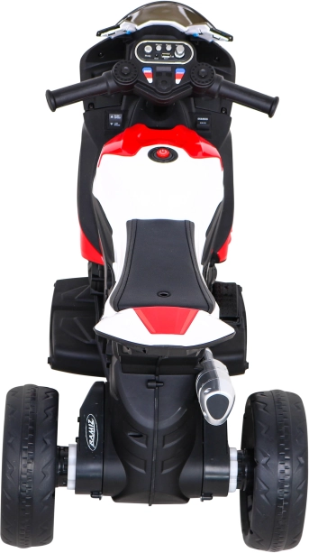 Motocicletă pentru copii cu stil, inspirată de modelul de curse BMW HP4, oferă o plimbare sigură pe 3 roți, iluminare LED pentru vizibilitate mai bună și o șa confortabilă din piele eco. Două motoare 2×35 W alimentate de o baterie 12 V 4,5 Ah asigură deplasare lină înainte și înapoi, în două viteze. Distracția este susținută de MP3/AUX/USB și butoane sonore pe ghidon.