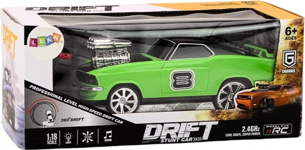 Bucură-te de alunecări energice în viraje strânse, redirecționări rapide și piruete impresionante – toate posibile datorită construcției pentru drift lin și direcției stabile. Mașina se remarcă prin aspectul verde intens cu detalii sportive și lumini LED care adaugă atmosferă fiecărei curse.