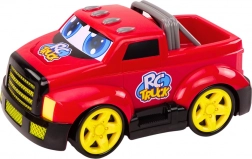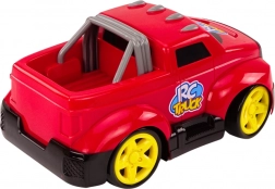 Construcția robustă din plastic, caroseria roșie intensă și roțile galbene atrag copiii și rezistă jocului zilnic.