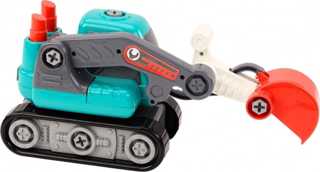 Acest excavator pe șenile stilizat, în culoare turcoaz, va încânta orice copil pasionat de șantiere și tehnică. Cu ajutorul șuruburilor și al uneltelor incluse, copiii pot demonta și reasambla vehiculul, dezvoltând răbdarea, gândirea logică și îndemânarea.